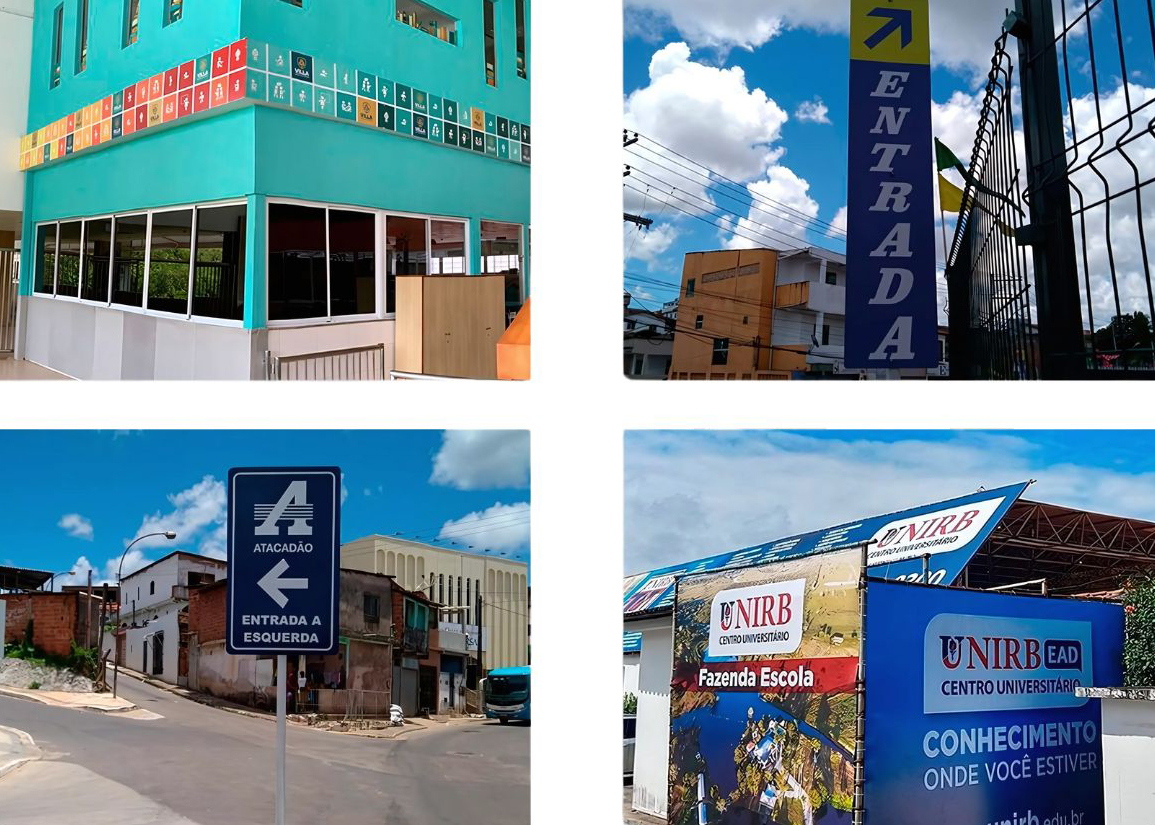Sinalização inteligente e bem planejada para orientar, informar e destacar sua empresa. Design funcional aliado à identidade visual da sua marca.